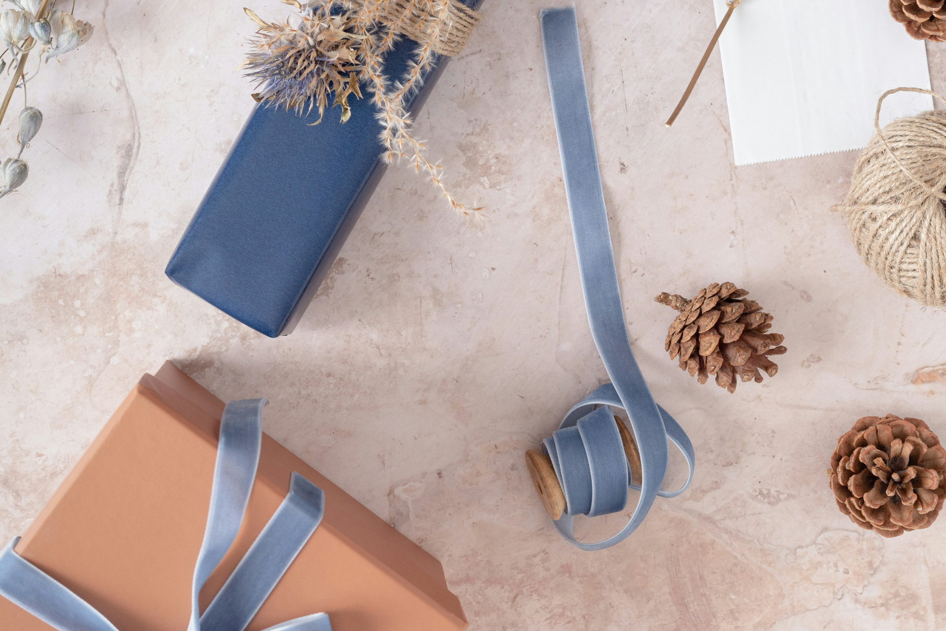 Vælg bånd i naturmaterialer som jute, bomuld eller papir. Undgå plastikbånd og glitter, hvis du ønsker en bæredygtig løsning. Kombinér gerne med genbrugspapir eller avissider for et rustikt udtryk.